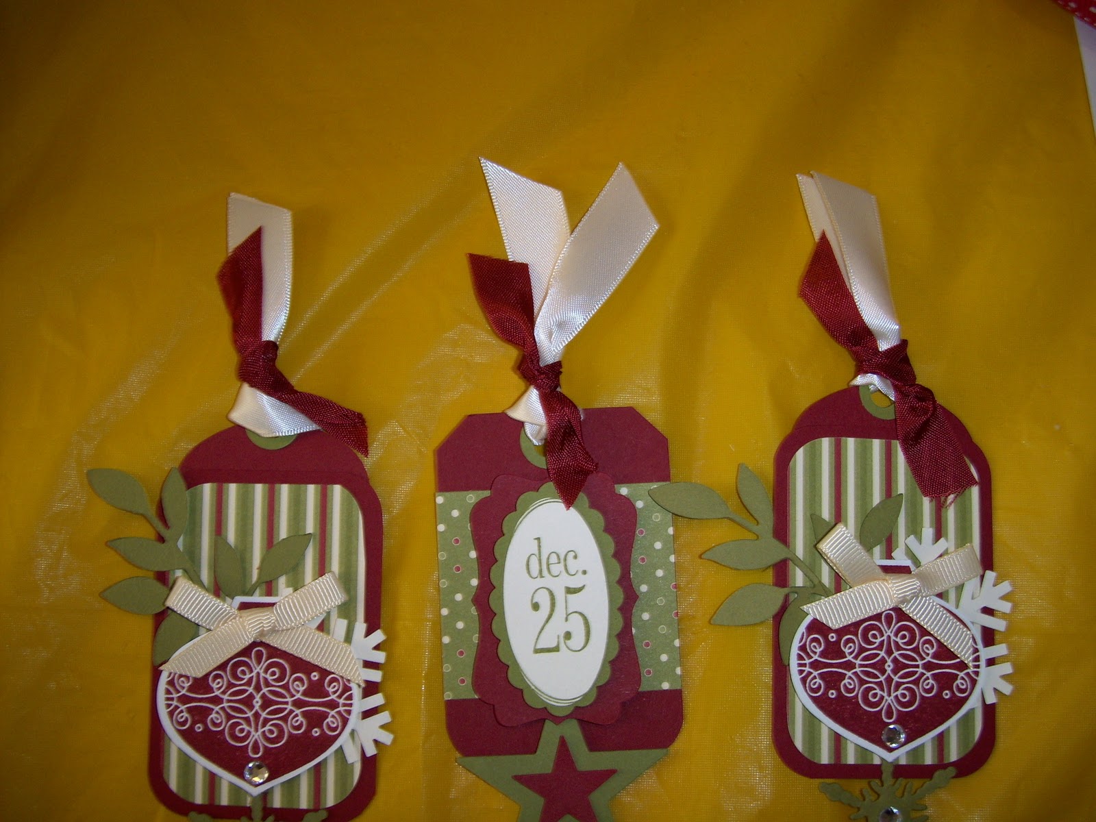 Judee made some beautiful Christmas gift tags and candy cane holders...