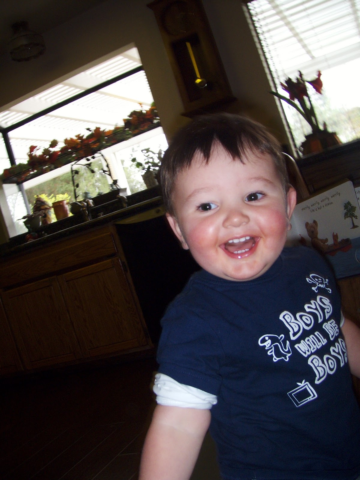 Pretty soon I had him playing with the Tonka trucks again to distract him...