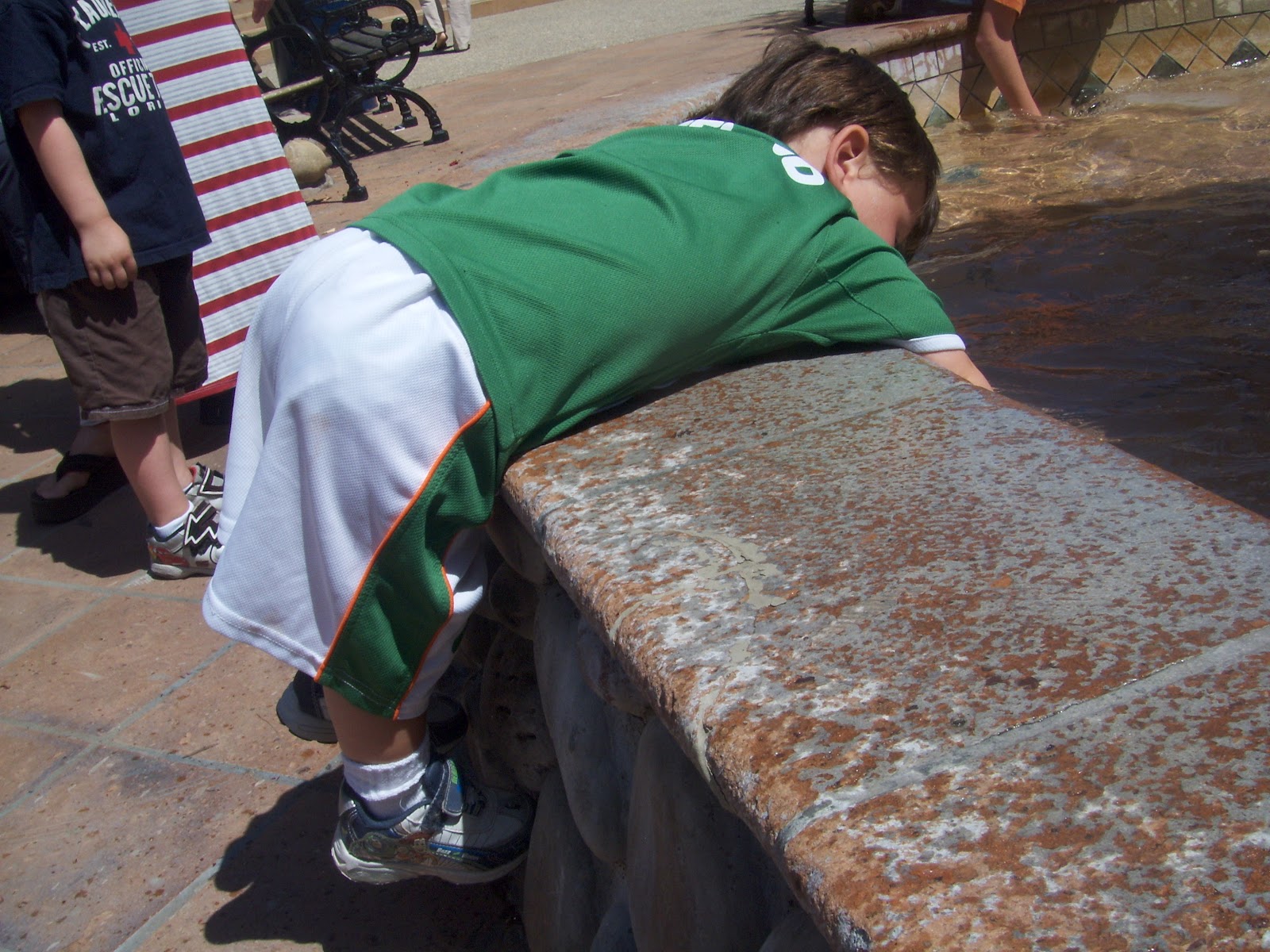 Of course the water fountain was the first attraction .... he's very inquisitive and needs to figure out how these things work....