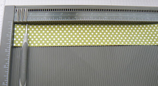 Cut a strip 7/8" x 8-1/2" of DSP and adhere around base of container using Sticky Strip.